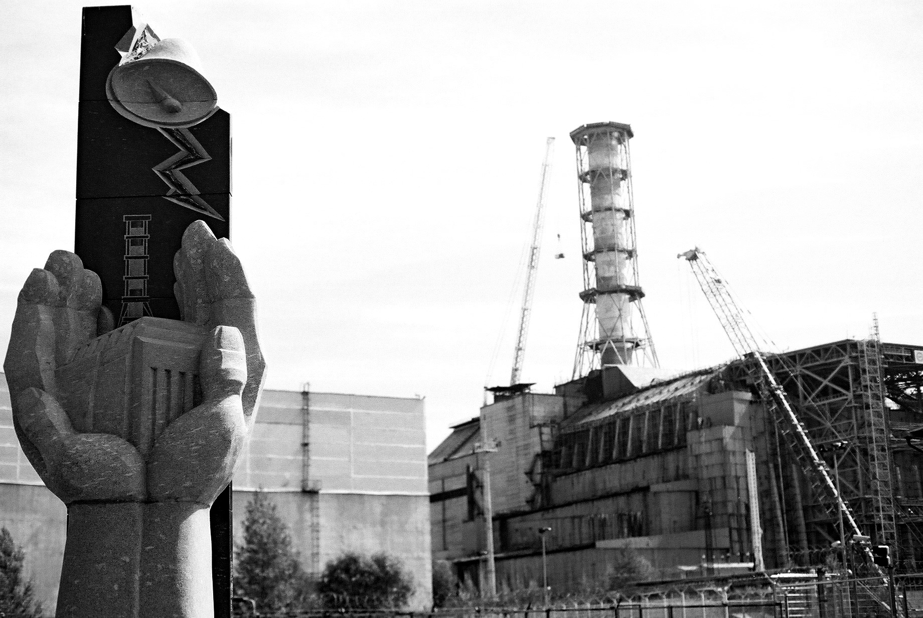 And then you see the reactor itself, its mangled mess of broken pipes and twisted vessels covered by an enormous concrete sarcophagus, a vast tombstone that forms a more sublime memorial for the victims of the tragedy than any of the slightly tacky plasticky monuments scattered around the area. It was built with no real consideration for architecture, the concrete blocks were assembled haphazardly, as quickly and as efficiently as possible, to contain the leaking radiation, but it does in fact look exactly like a cathedral. The faded smokestack forms the spire, it has its long nave, its square pillars like flying buttresses, its transept of scaffolding. It is the cathedral of the Enlightenment, a temple built to mollify the eschatonic power of the atom. Like the kaaba, or the kadosh hakadoshim, it contains a light so fierce that it would burn away any man who entered; and those who visit must undergo ritual cleansing – except here, instead of being anointed with oil, you press your hands against one of the large Geiger counters that ring the site and pray that the little light turns green.