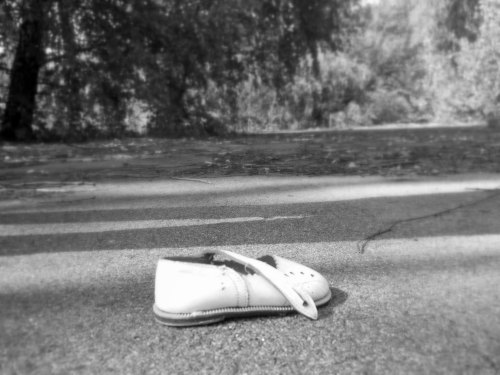 Only when you go further from the bright concourses of the abandoned buildings does this illusion shatter, because every room in every building you visit is full of stuff: human stuff, notebooks, trinkets, portraits, music sheets, reminders that fifty thousand people once lived here, and now there is nobody. In a municipal swimming pool, the diving-board still arches gracefully over a tiled pit filled only with broken glass and debris. In the palace of culture, books lie torn and scattered across the shelves: a moment of panic, frozen. In the rusted tangle of what was once a funfair, you find a child’s shoe on the tarmac: only one.