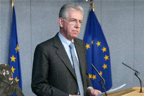 Usually I’m all in favour of politicians being humourless weirdos. They’re not like us, they shouldn’t be like us. That’s why I had a lot of sympathy for Gordon Brown, against all my political instincts. Politicians should be real people, ugly people, not yippy grinning idiot replicants like Blair or the Milibands or Clegg or Cameron or Clinton or Obama or Palin or Cain or… the list goes on. But Monti is a very different type of animal (or mineral, as the case may well be) altogether. His dourness isn’t that of a serious and committed politician, it’s that of an obsessive ideological pervert. The technocrats have not been installed to save their countries. They’ve been brought in unelected because, for whatever reason, democratic politicians (even joke ones like Berlusconi) were unable or unwilling to push through the kind of debilitating austerity measures demanded by the markets. Their supposed ideological neutrality is nothing of the sort. It’s only neutral in the topsy-turvy world that has contorted itself into immanence after the end of history, where the primacy of capital, and finance capital in particular, is axiomatic. They are pursuing a specific ideological agenda, and it’s not a very pretty one.