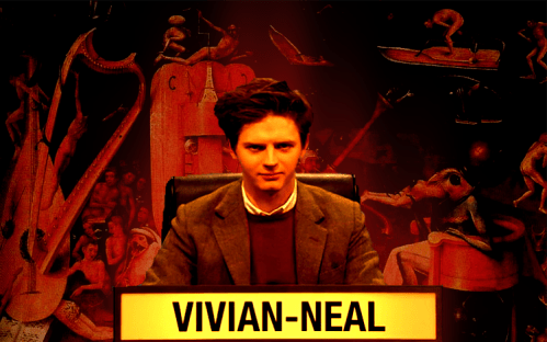 Luke Vivian-Neal is clearly a very passionate man. Or, in the words of various Twitter commentators, he is ‘ever so intense,’ ‘a prime example of a secret serial killer,’ ‘the sort who would wear your skin to a party,’ ‘an evil Paul Merton,’ and ‘actually going to kill all of us #thoseeyes.’ He’s certainly the most interesting contestant University Challenge has had in a while. He holds his forehead low, his hair flops over his eyebrows, and he stares up at the camera with what appears to be utterly undisguised loathing. When he answers a question correctly there’s a tiny grin, a fractured chink through which the horror of the Other’s enjoyment can be glimpsed. When he gets one wrong he looks omnicidal, a glowering thundercloud of a human being. He definitely has a rich inner life. This effect is only heightened by the rest of the SOAS team: motherly Weber, trying to cheer Vivian-Neal up with a smile and a pat on the back; team leader McKean, the cheerfully studious everyman; thoughtful and deliberate Figueroa. They don’t seem to be from the same planet as Vivian-Neal, let alone the same university. It’s not hard to imagine them as the cast of a University Challenge spinoff, a tense psychological thriller in which Vivian-Neal slowly picks them off one by one. Of course, the most important thing about the passion of Luke Vivian-Neal is that it’s a passion: something that acts on him from the outside, an image, a fantasy. Real serial killers are, for the most part, astonishingly boring people; not cold and steely and erudite like Hannibal Lecter or Norman Bates, but driven by dull brutish psychopathy. If Vivian-Neal actually had bodies in his freezer, he’d lose all his fascination. The fantasy of the smart, brooding, potentially murderous young man isn’t his – it belong to us, the viewers.