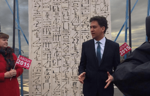 The latest political news is disturbing. Labour leader Ed Miliband has erected an enormous stone obelisk, on which he’s carved his election platform. The idea is that his promises are to be ‘set in stone’, and as a symbol of their permanence, his stele will be sailed down the Thames, out to sea, and stood among the pyramids at Giza, to take their place among the eternal testaments to human imagination. Hegel, in his Aesthetics, says of such structures that what is preserved naturally is also interpreted in its idea as enduring. Herodotus says of the Egyptians that they were the first to teach the immortality of the human soul. With them, that is, there first emerges in this higher way too the separation between nature and spirit. He also notes that we have before us a double architecture, one above ground, the other subterranean: labyrinths under the soil, magnificent vast excavations, passages half a mile long, chambers adorned with hieroglyphics, everything worked out with the maximum of care; then above ground there are built in addition those amazing constructions amongst which the Pyramids are to be counted the chief. Like the iceberg, what we see of Miliband’s stone is not the entire thing; it extends underground. The stone has a buried double, an inverted image of itself: something cannot last forever without the incorporation of its antithesis, which is also its truth, into its totality. The shadow-stone promises the economic ruin of the ruling classes, vows to smash the NHS, and praises the undifferentiated tide of immigrants, all scowling, all crawling with fleas and disease, that will come to sweep away the rottenness of this country. And just as the sublunar stone is a monument to the Gods, in the form of the news media whose signals bounce around off satellites on the chilly edge of outer space, so too does the subterranean stone have its audience. After the election is lost and won, the obelisk will be set up, and beneath it there must be a tomb. Inside: the shrunken, dessicated corpse of Ed Miliband, his skin grey and stretched over fossilised bone, his body untold thousands of years old.